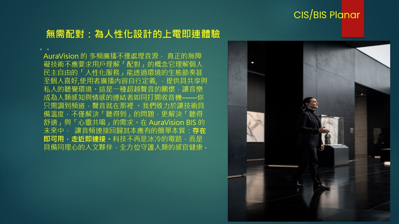 4.國際專利護航:創新世界技術,首創AuracastBIS廣播LC3技術,免配對開電自動連結,無限數量同步收聽,立即享受。