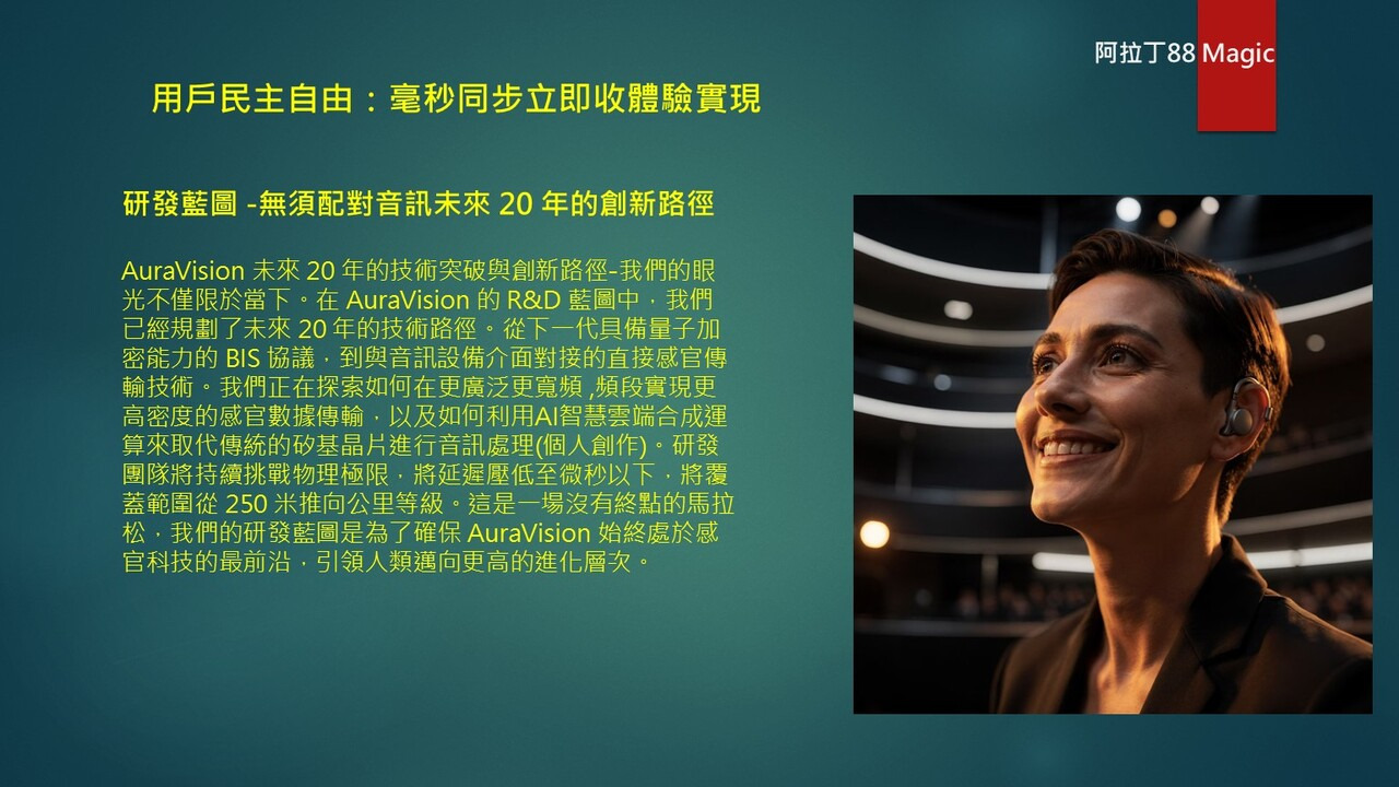 6. 最新藍海產業:領先同業技術,搶佔新藍海,徹底超越傳統藍牙限制。開創全新無線廣播AI聲學商機。
