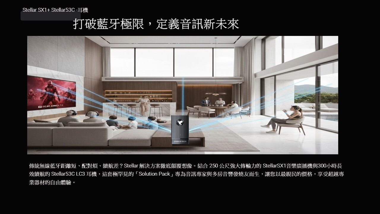 5.音質核心硬體:Stellar SX1 LC3音樂廣播機 + Stellar 53C LC3耳機_2入。