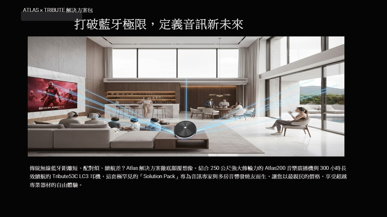 5.音質核心硬體:Atlas 100 LC3音樂廣播機 + Tribute 53C LC3耳機_2入。